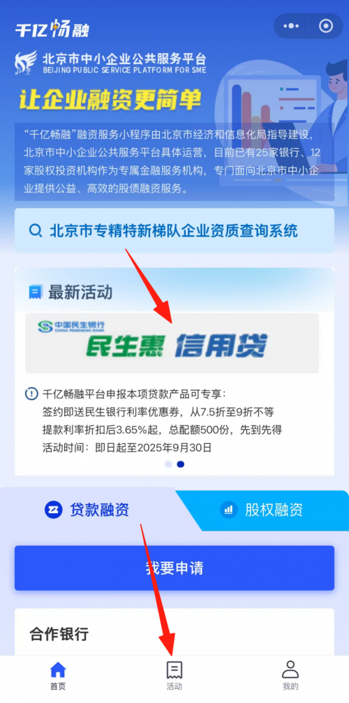 由北京市经济和信息化局指导建设,北京市中小企业公共服务平台负责运营的千亿畅融融资服务平台,秉持 “公益普惠、便捷高效” 原则,为北京市中小企业、专精特新梯队企业量身打造的融资对接桥梁。