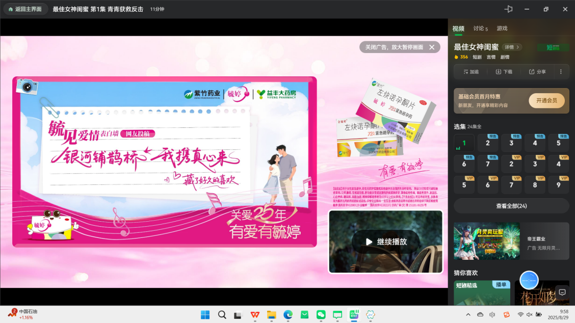 本次活动锚定七夕与毓婷品牌日双节点,借助爱奇艺平台大流量曝光唤起用户情感共鸣,同步联动实体药店打造沉浸式观影体验,在营销活动中不断夯实毓婷品牌专业关注女性健康的品牌形象,传递温暖有爱的品牌态度,持续提升用户对于品牌的信任度与好感度。